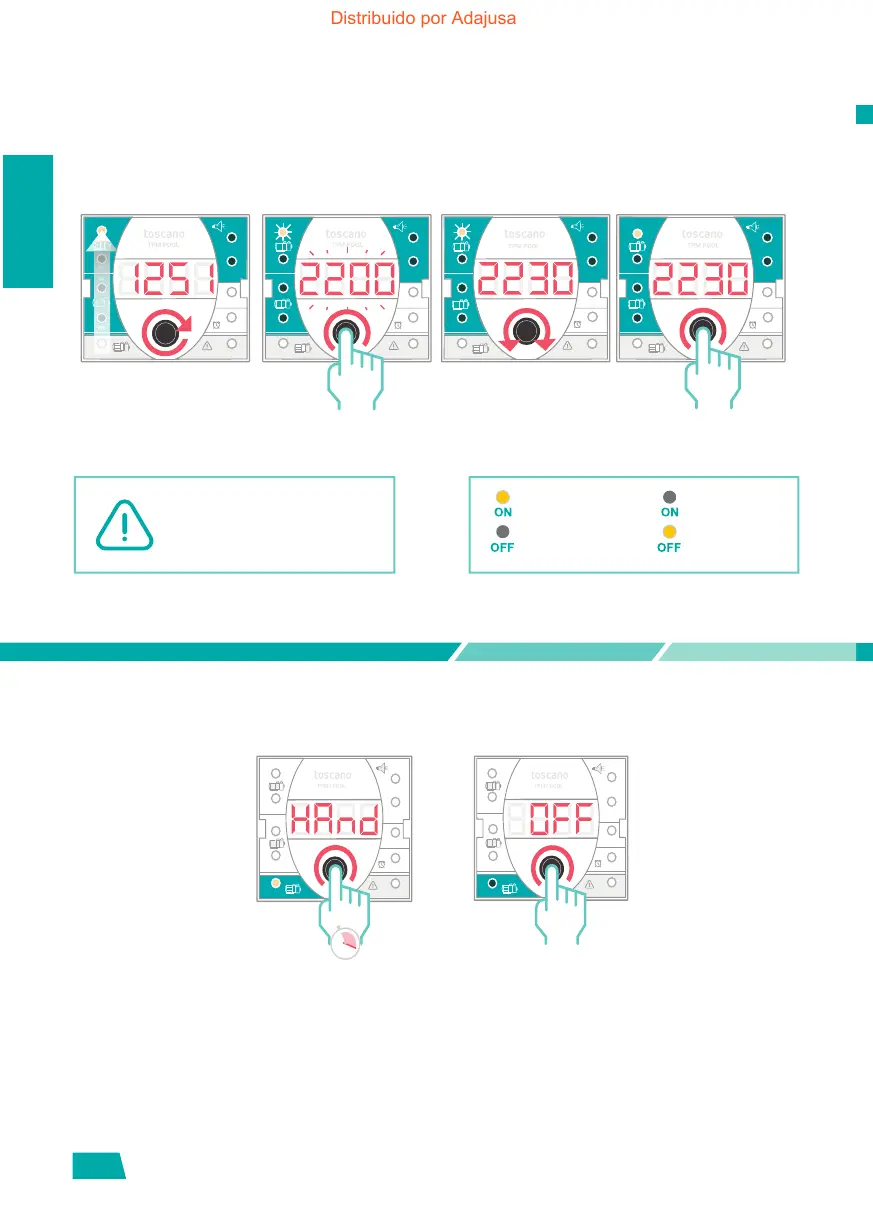 hora en ON y en OFF.