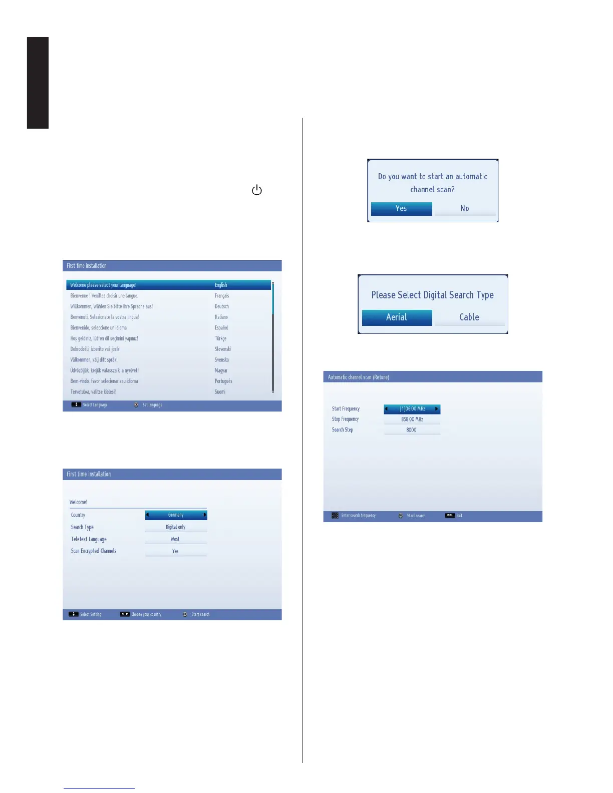 switching on the TV for the rst time installation.