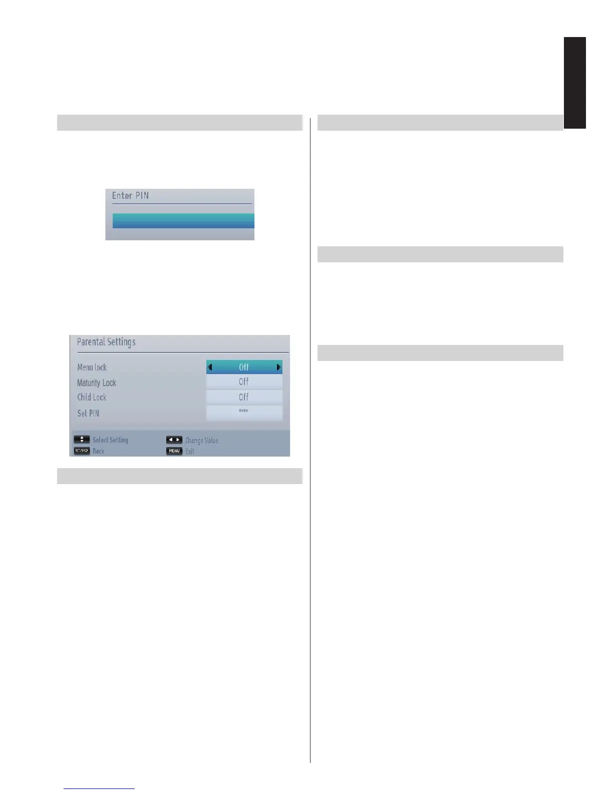 Digital Settings - Parental Control, Menu Lock, Set PIN