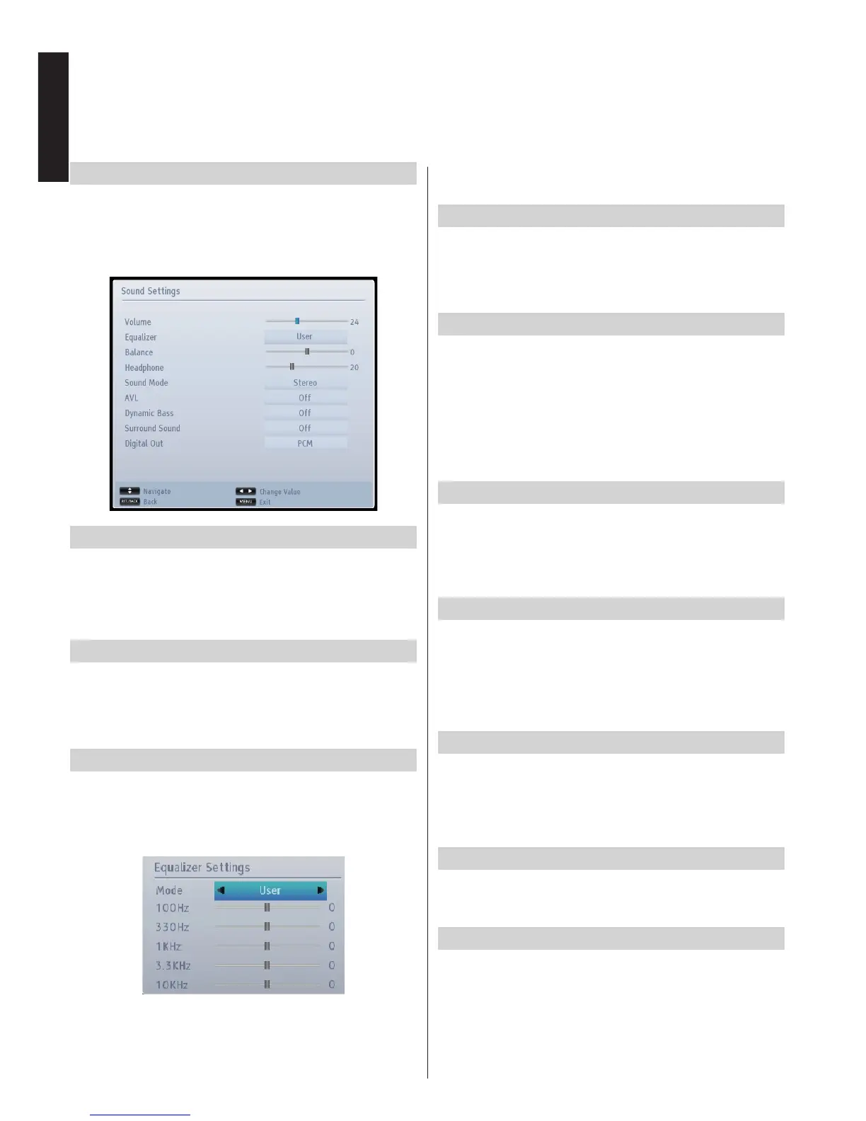 You can congure sound settings of your TV by using Sound Settings menu.