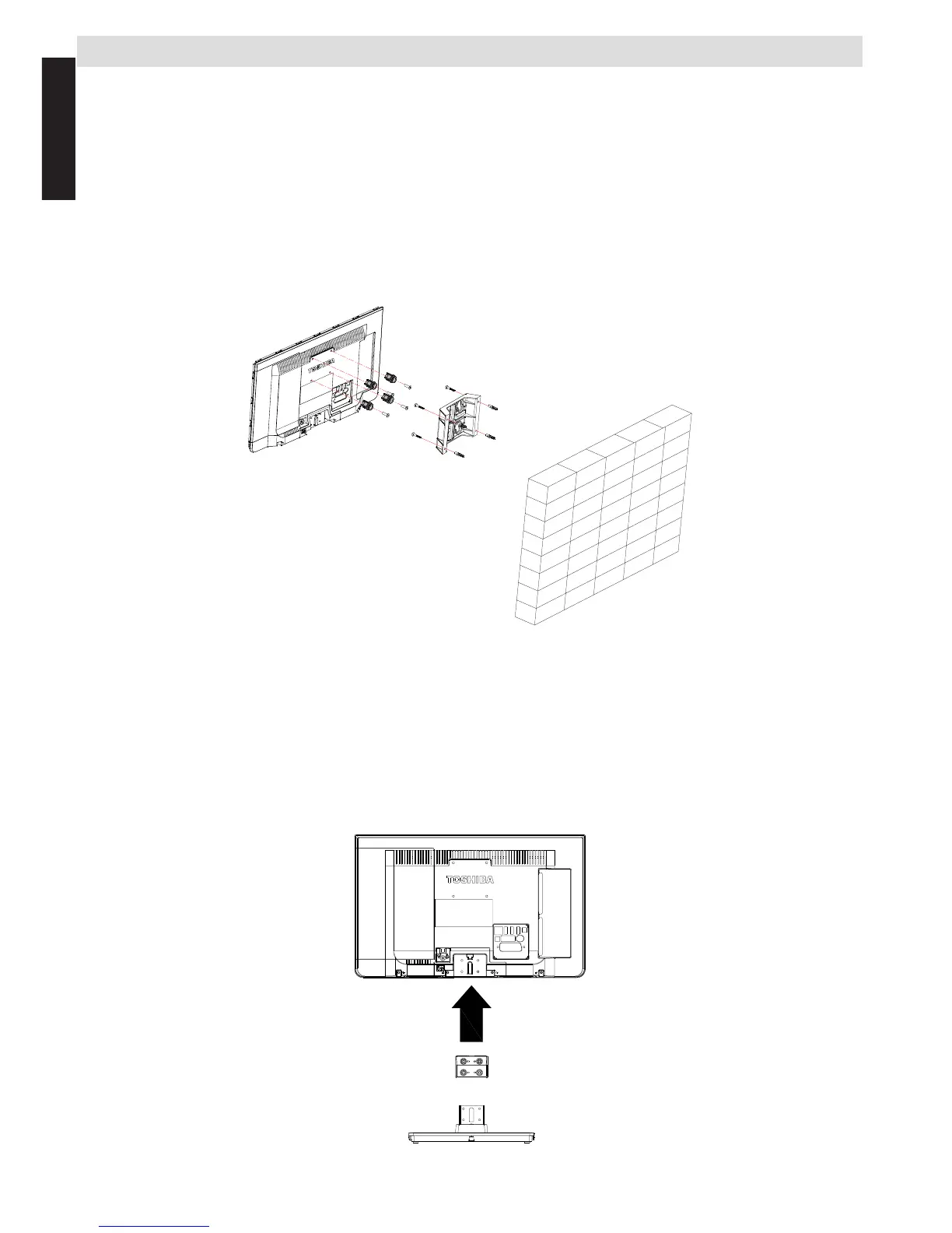 • The bracket shown above is a sample image. The bracket and xings are not supplied with the TV.