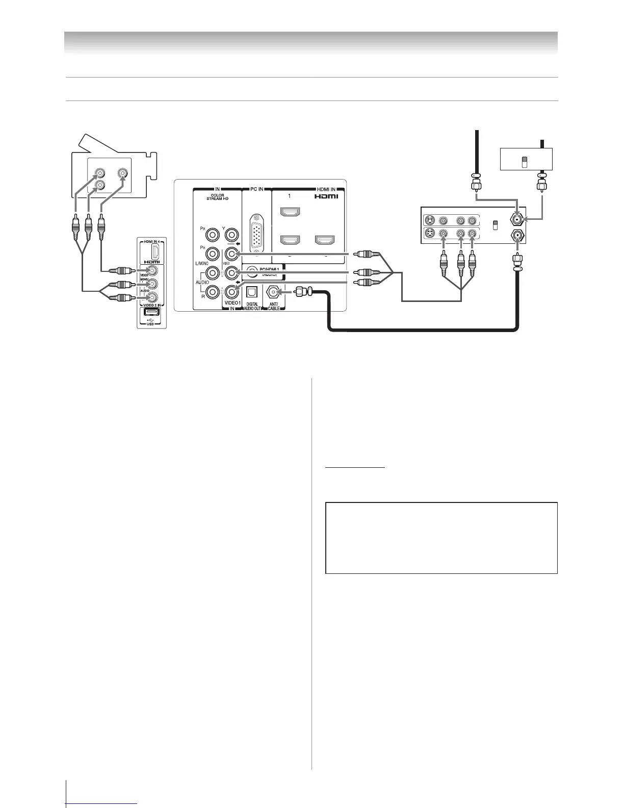 Connecting a VCR and antenna, Cable TV or Camcorder