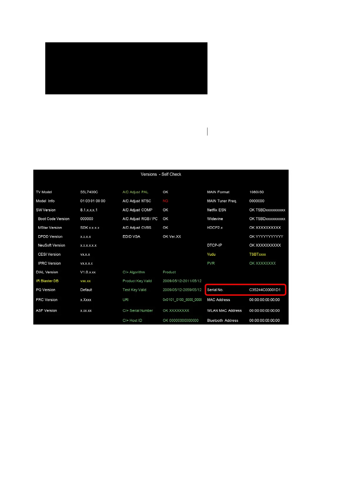 6. After finish writing the “OK” and “Serial number” appear on TV.