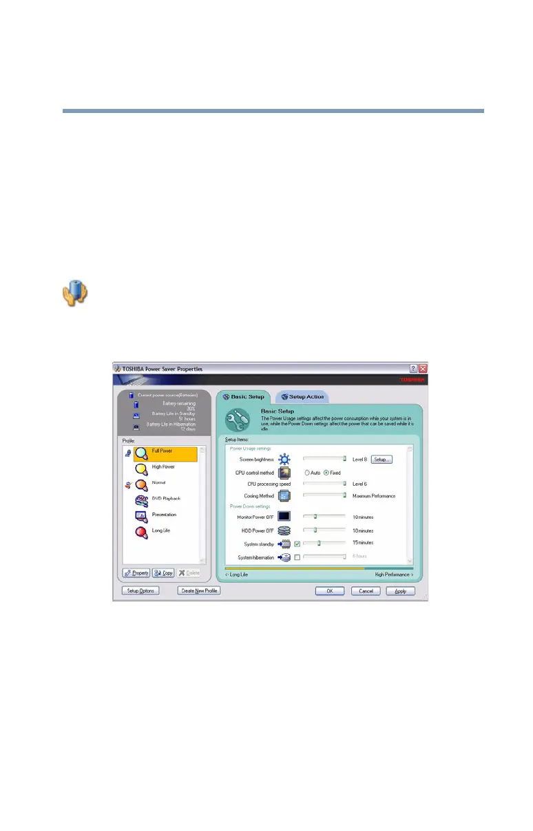 The TOSHIBA Power Saver Properties window appears.