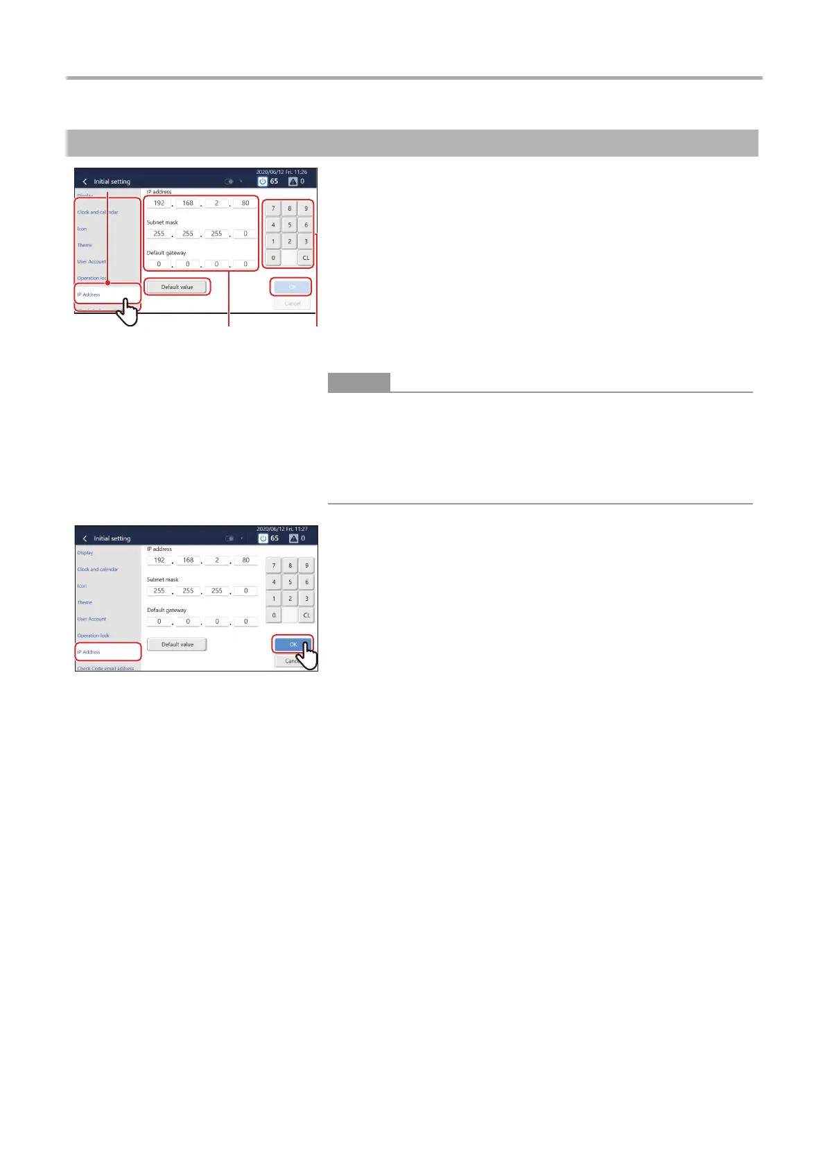• To return a changed value to the specified value, tap [(1)]. Tap [OK] on the