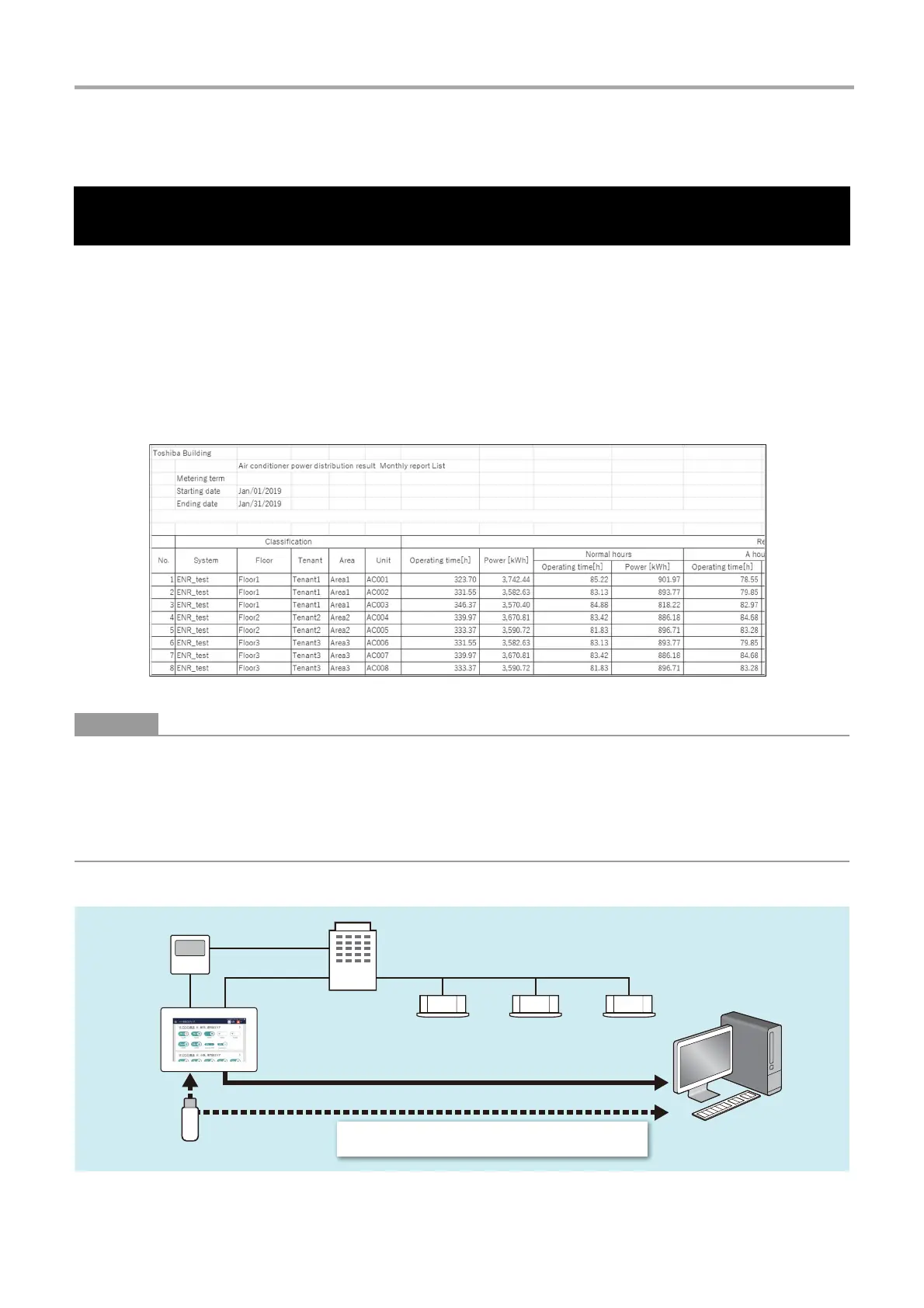 conditioner(s) and the ON/OFF equipment recorded by the Unit. In addition, you can easily summarize the operation results in