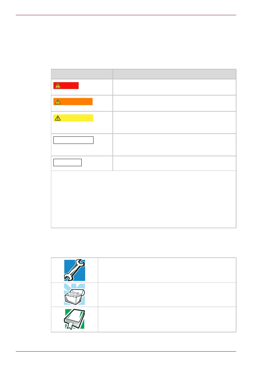 risikograd, og symbolerne fremhæver disse anvisninger på følgende måde: