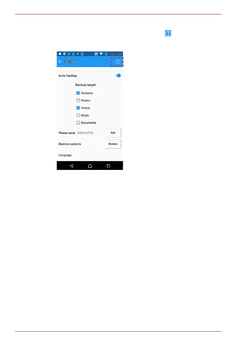 Du kan få vist appversionsnummeret, online hjælpeoplysninger,