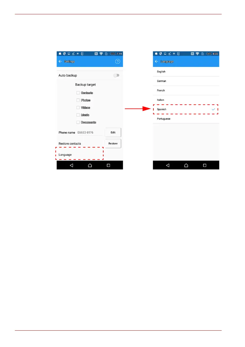 For å endre språkinnstillingen, trykk på «Language» (Språk) og velg