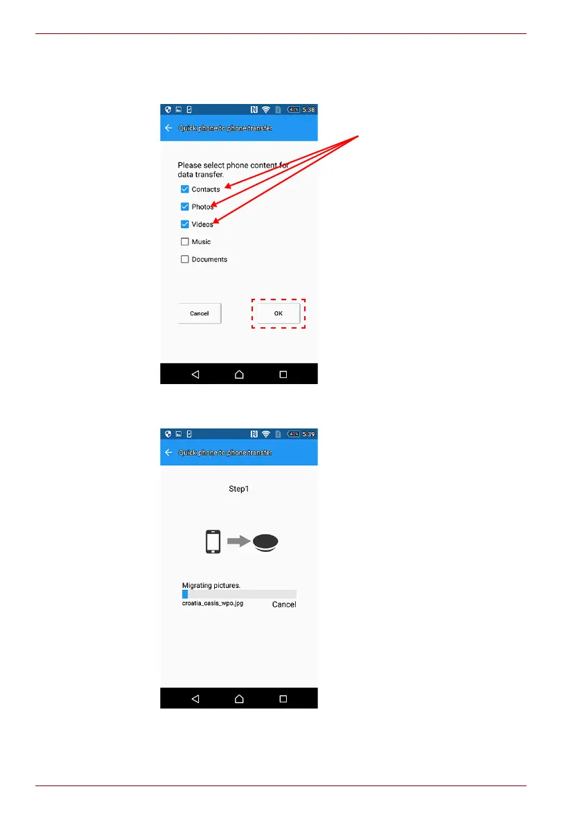 fotografias, vídeo, música e documentos) que deseja transferir.
