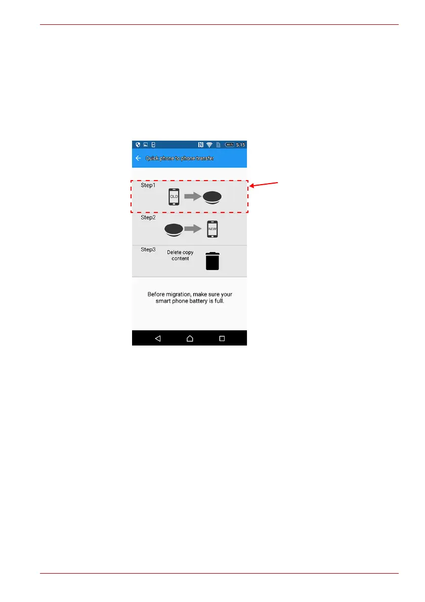 1.1. Pripojte starý smartfón (zdroj údajov) a ťuknite na tlačidlo Step 1