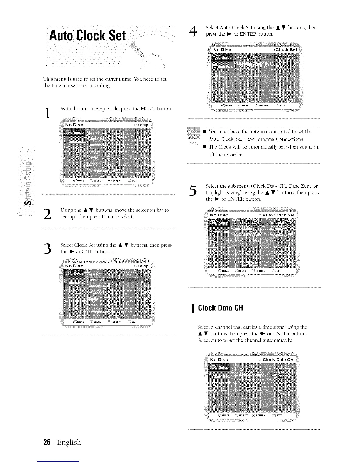 Auto ClockSet pn- sth,,I_ or ENTERbu/ton.