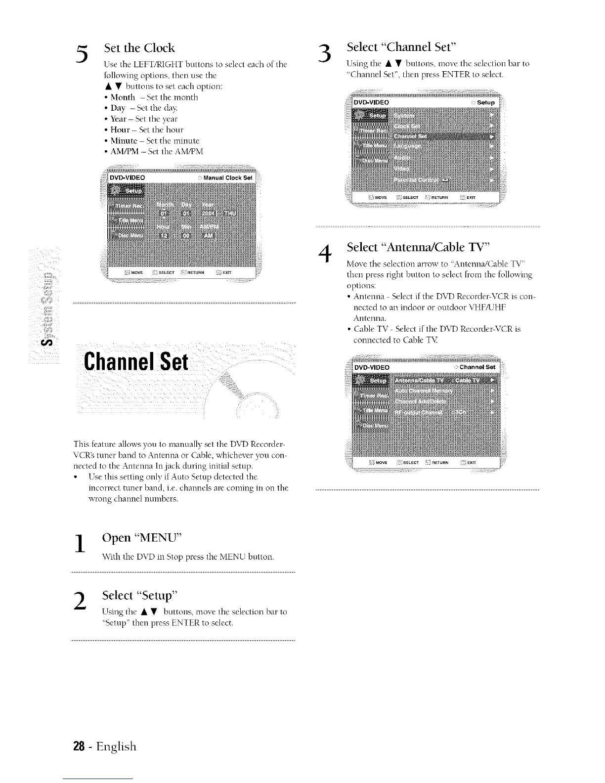 • Antenna - Select if tile DVD Recorder-VCR is con-