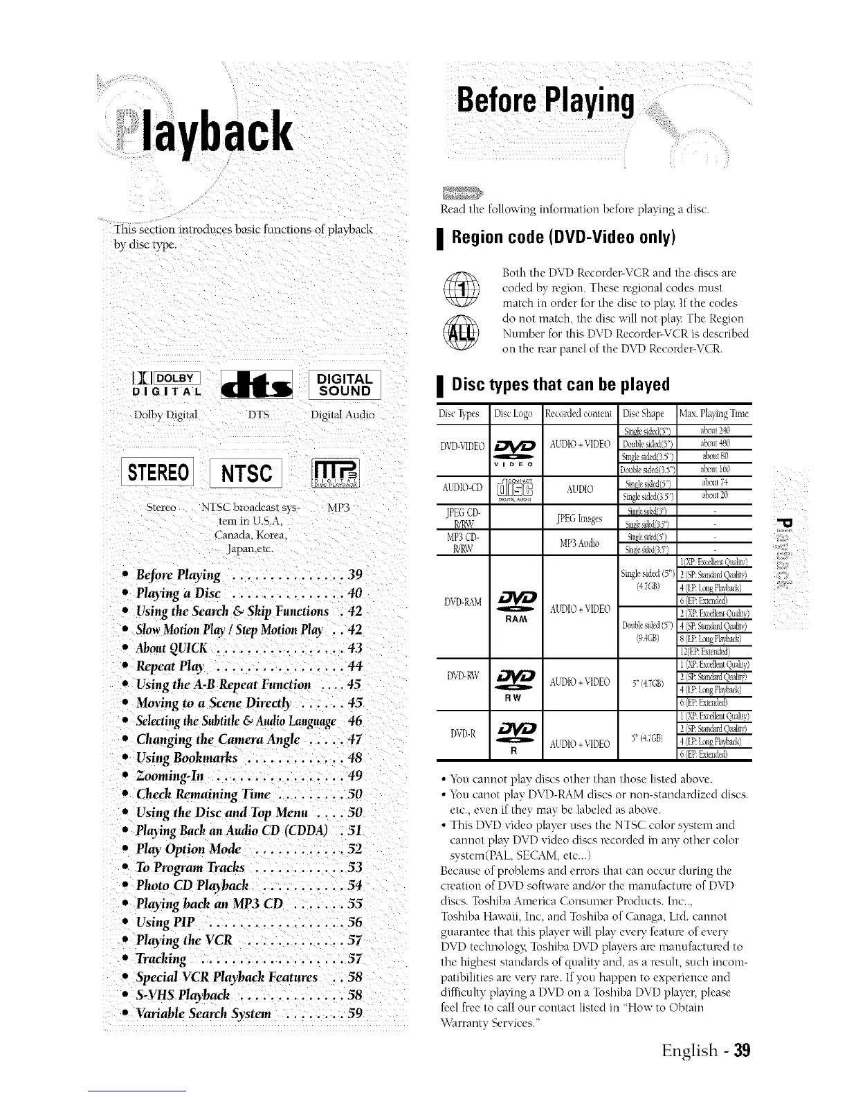 • Playing a Disc ............... 40