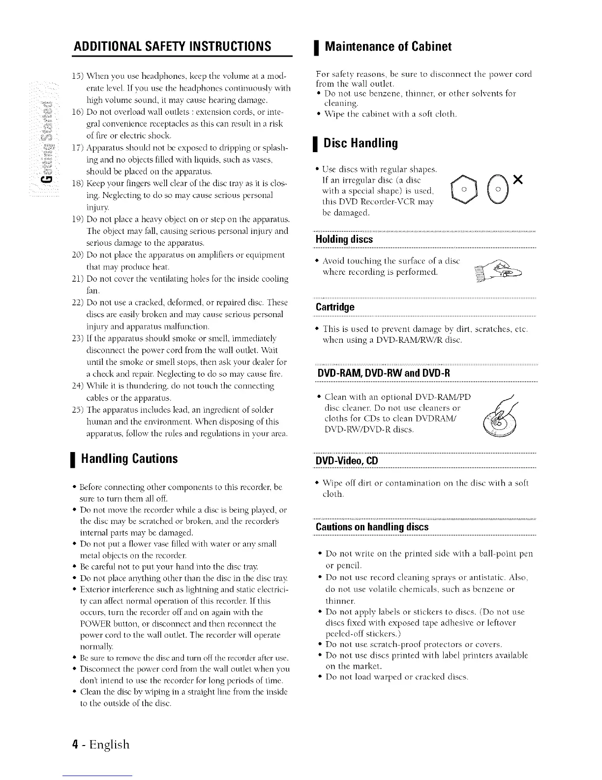 22) Do not use a cracked, deformed, or repaired disc. These