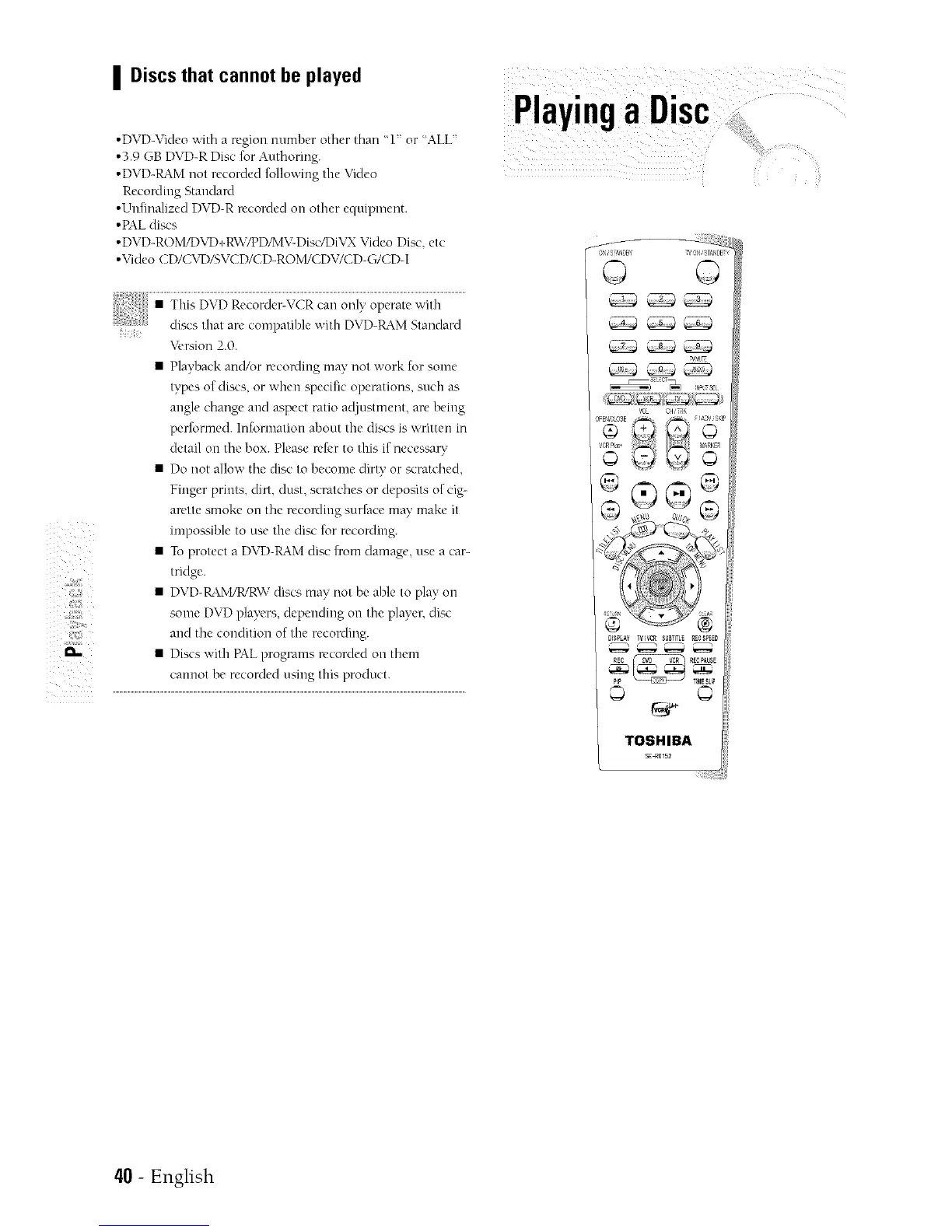 | Discs that cannot be played