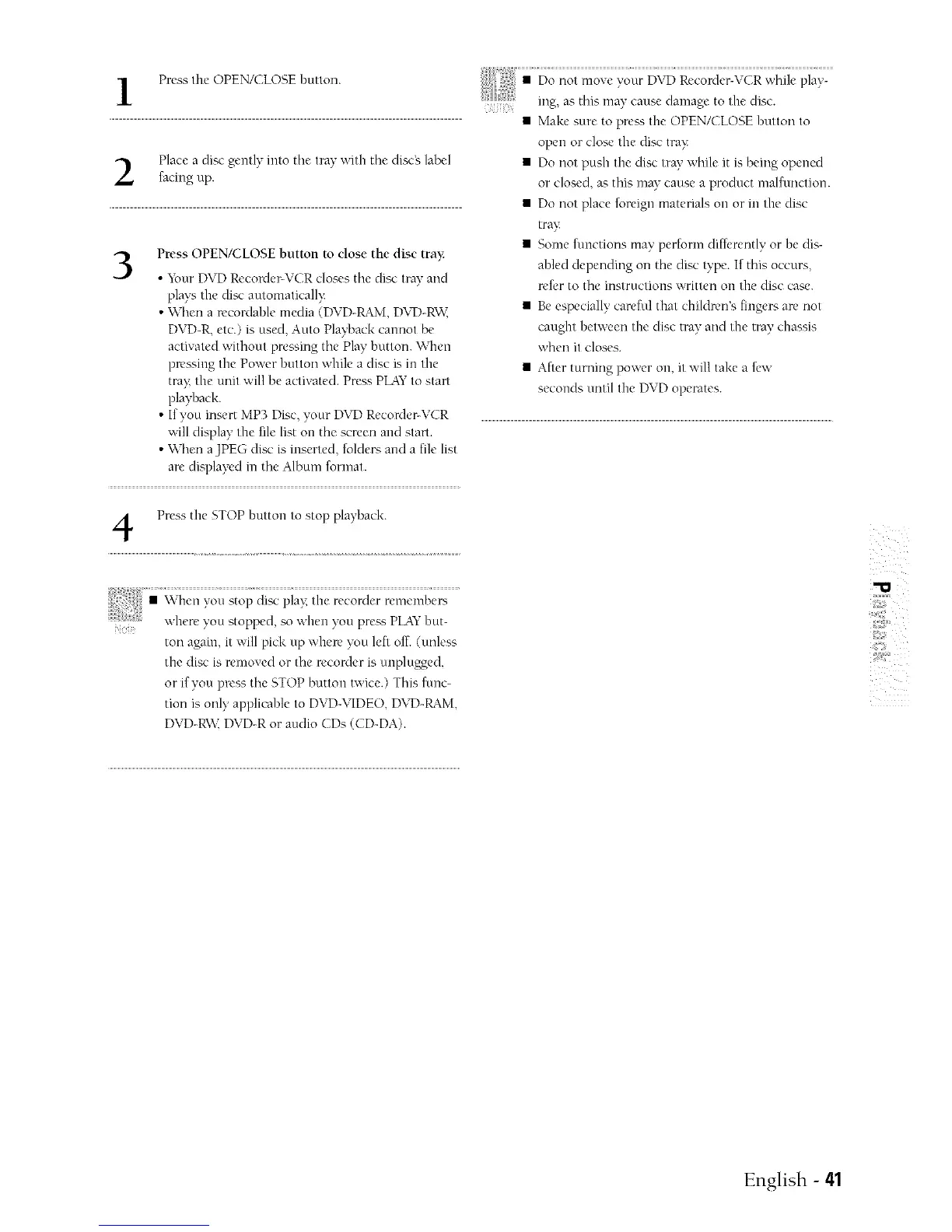 • Ifyou insert MP3 Disc, your DVD Recorder-VCR