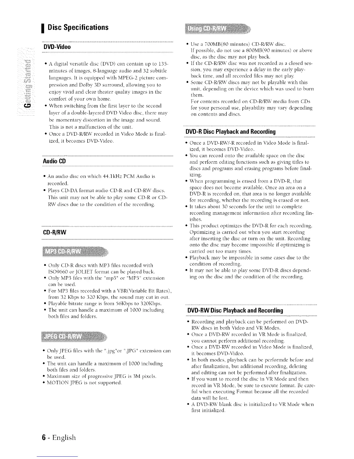 • Once a DVD-RW recorded in VR Mode is finalized,