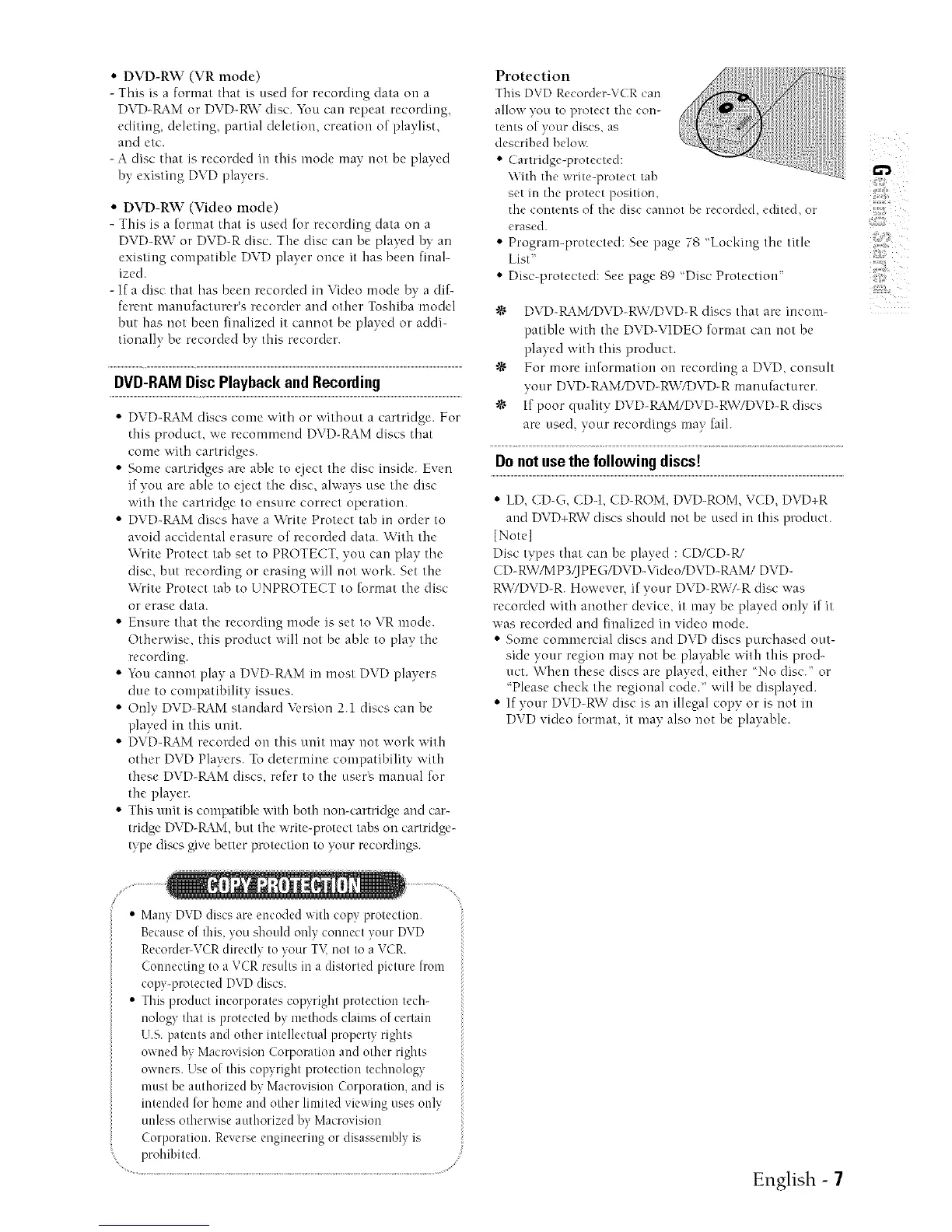 @ DVD-RAM/DVD-RVvTDVD-Rdiscs that are incom-