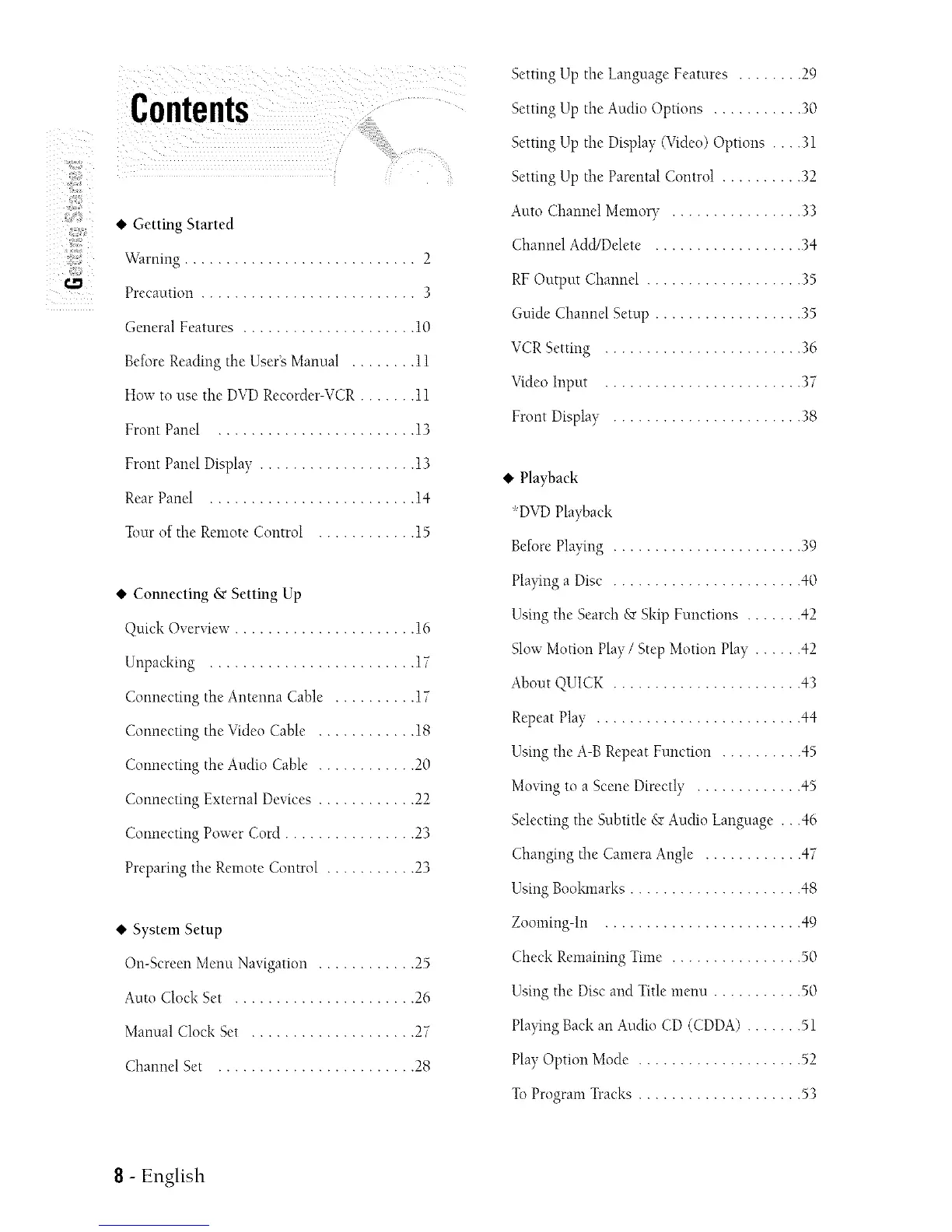 VCRSetting ........................ 36