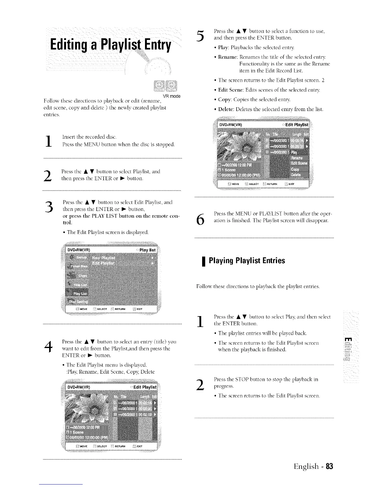 Follow these directions to playback the playlist entries.