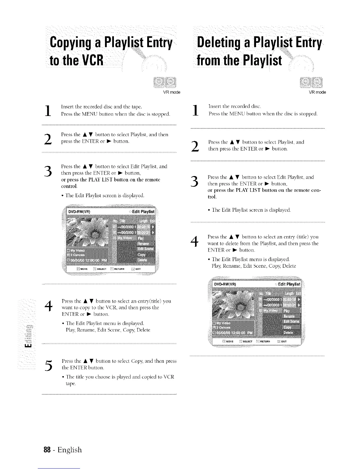 • The title you choose is played and copied to VCR