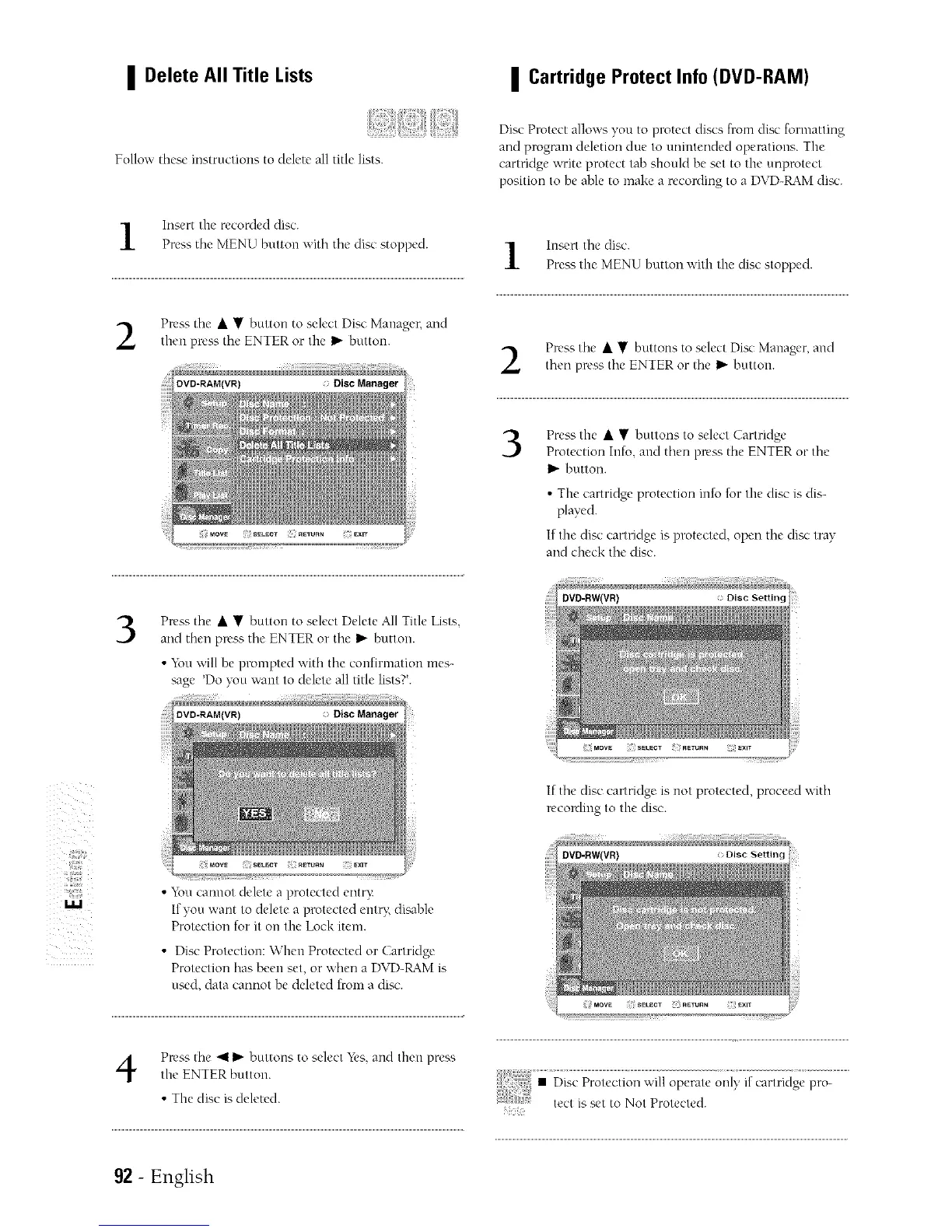 I Delete All Title Lists I Cartridge Protect Info (DVD-RAM)