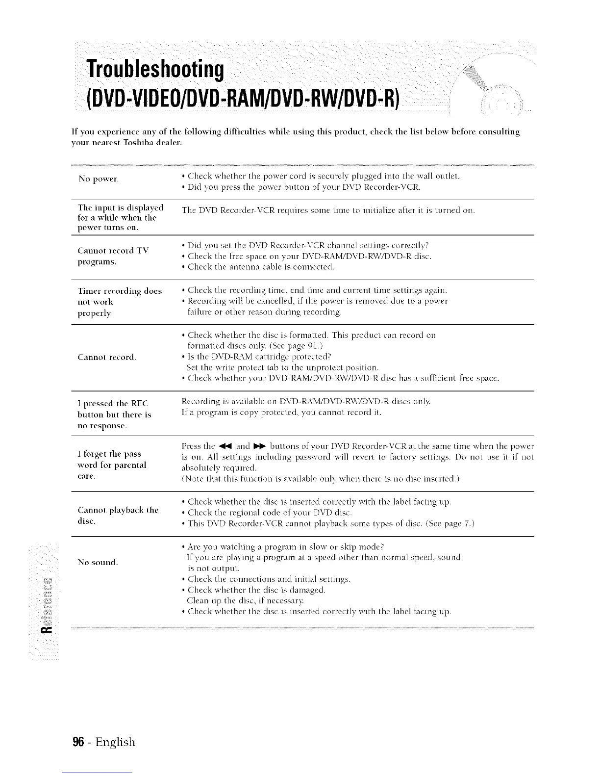 disc. , Tbis DVD Recorder-VCR cannot playback some types of disc. (See page 7.)
