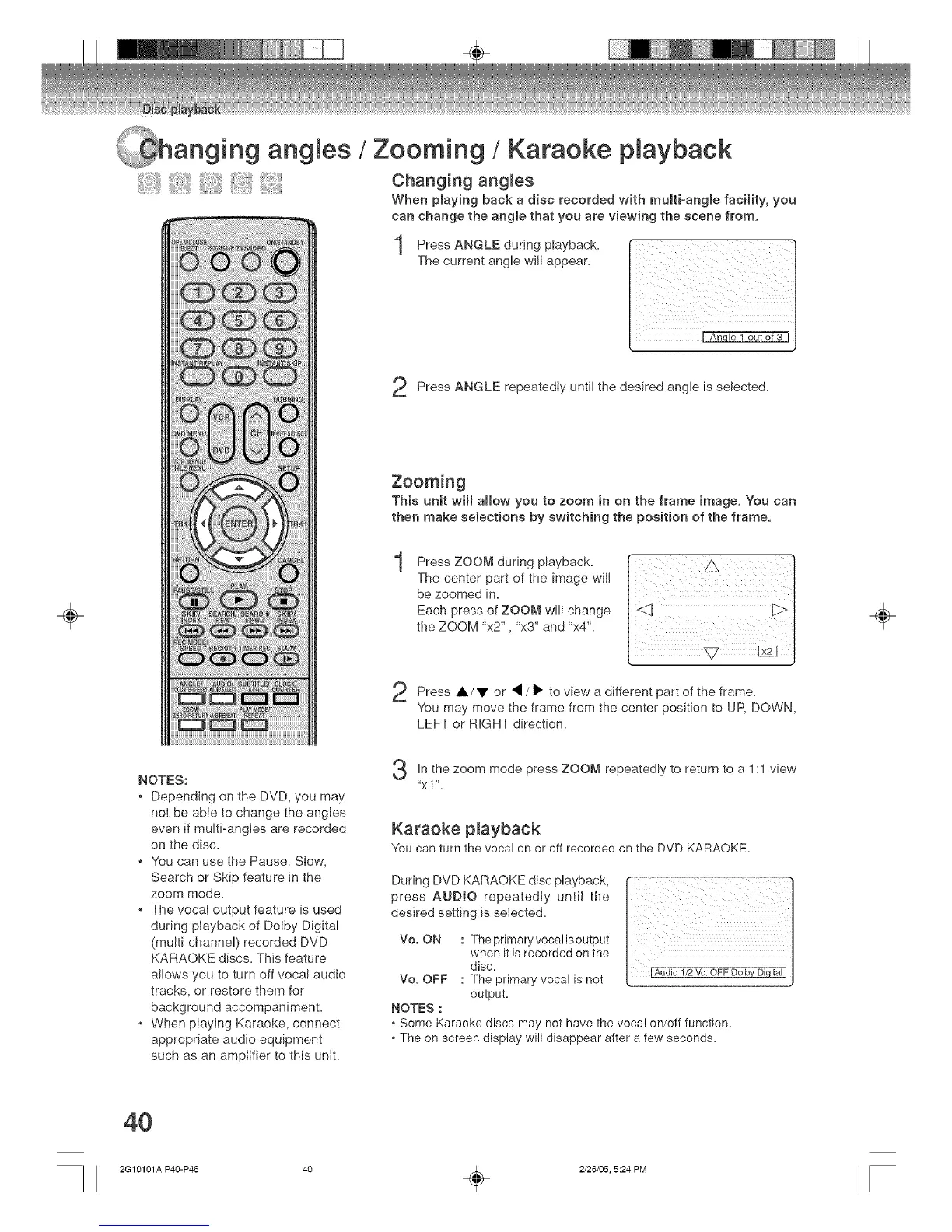 anging angles / Zooming / Karaoke playback