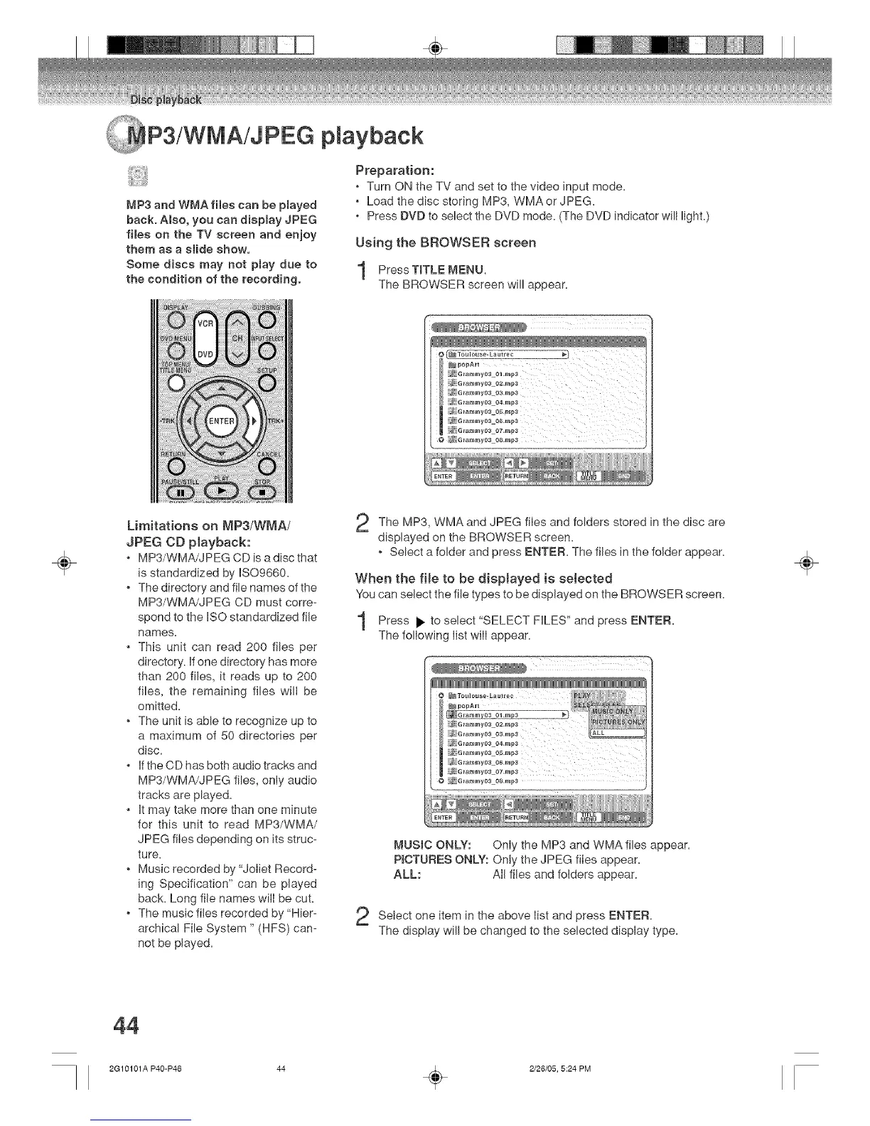 MP3/WMA/JPEG files, only audio