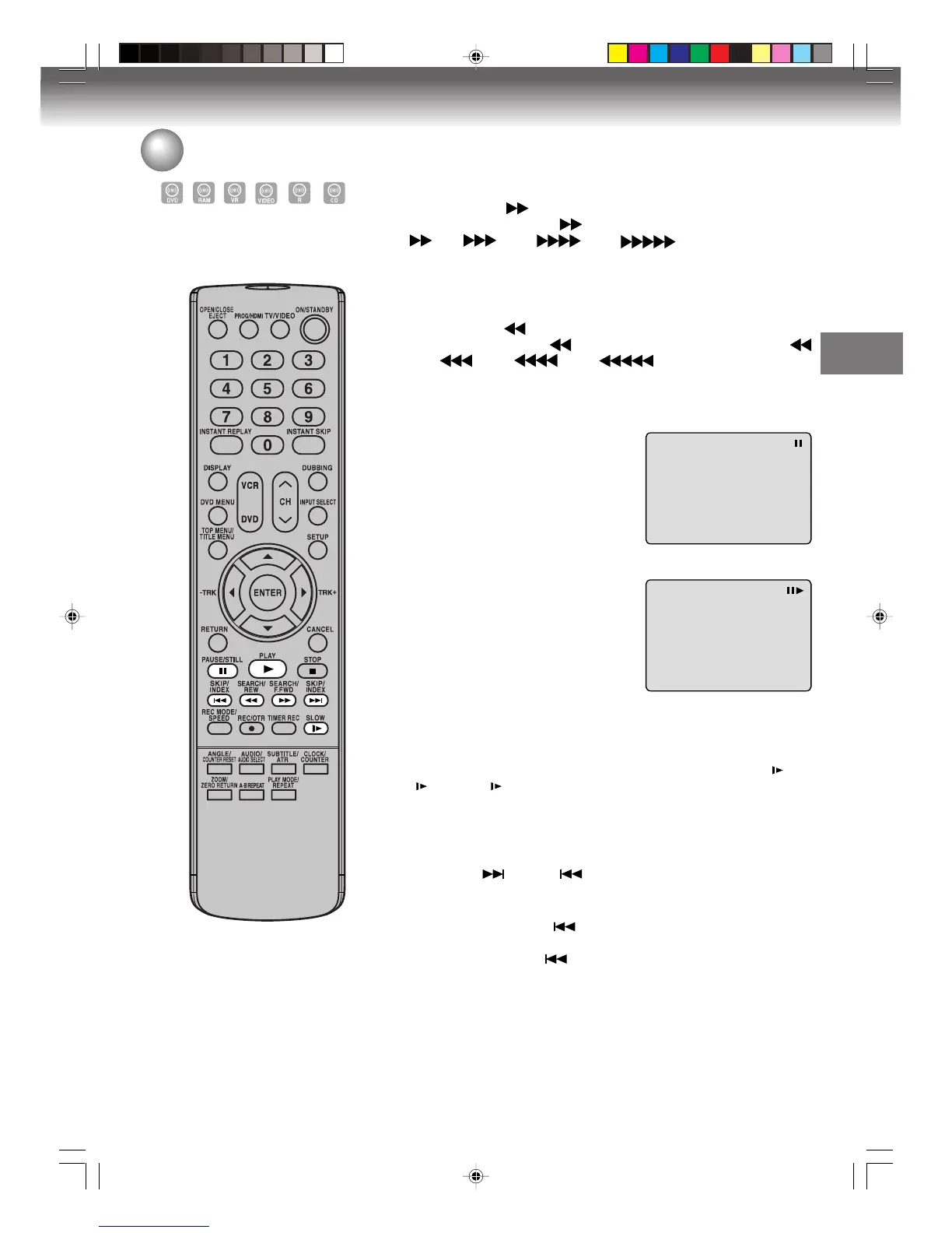 • Frame advance and slow motion does not work with a MP3/WMA/JPEG CD.