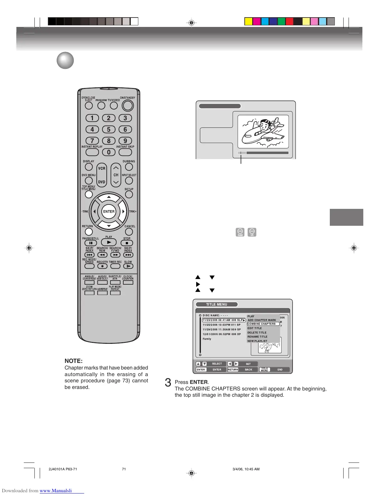 • Press or to select “COMBINE CHAPTERS”.