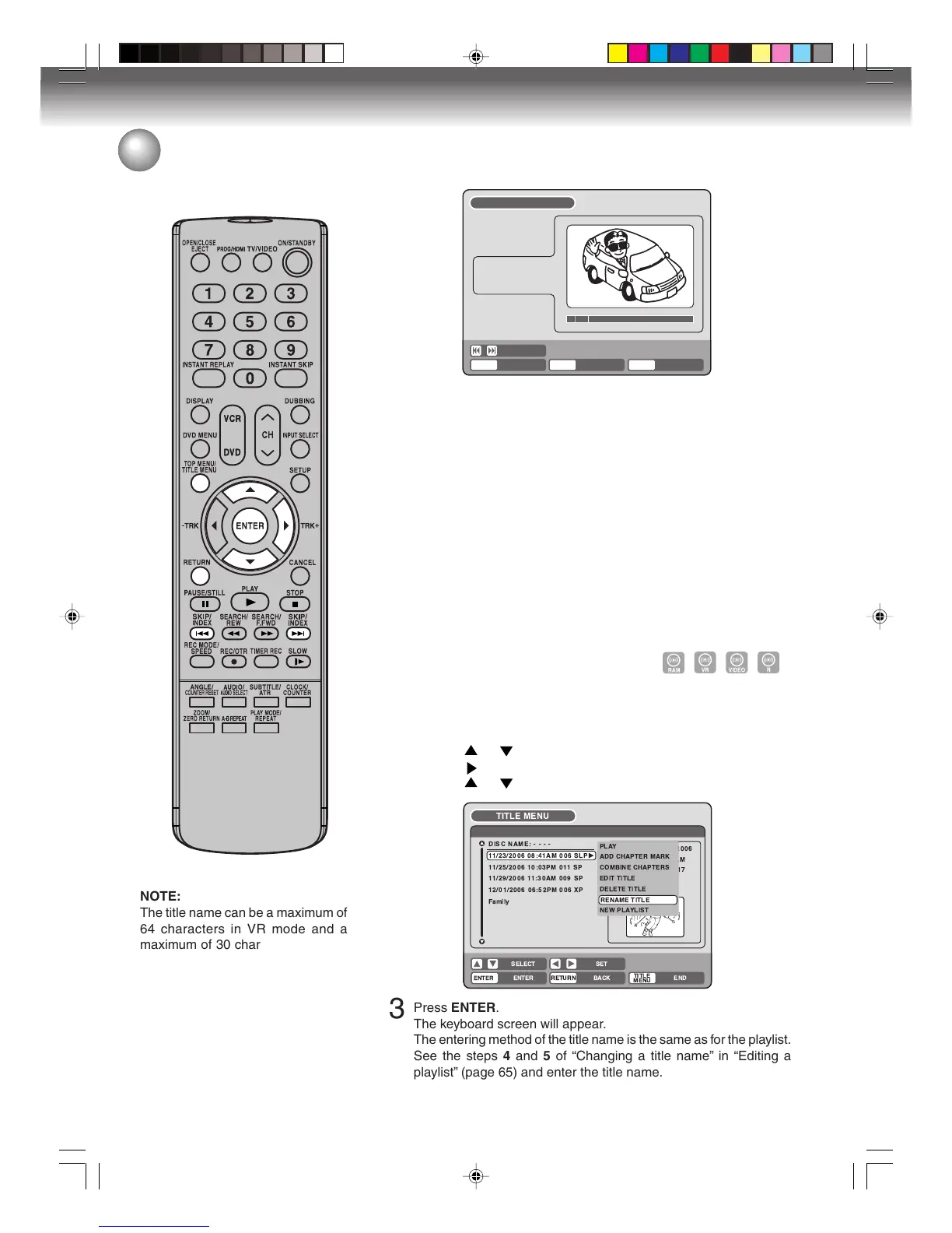 playlist” (page 65) and enter the title name.