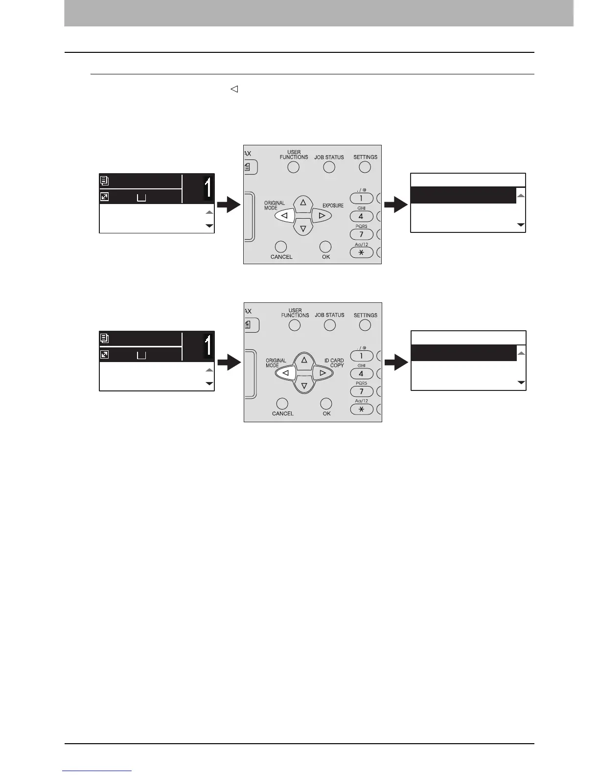 On the first screen of Copy mode, the button can work as the [ORIGINAL MODE] button. Just press the button to