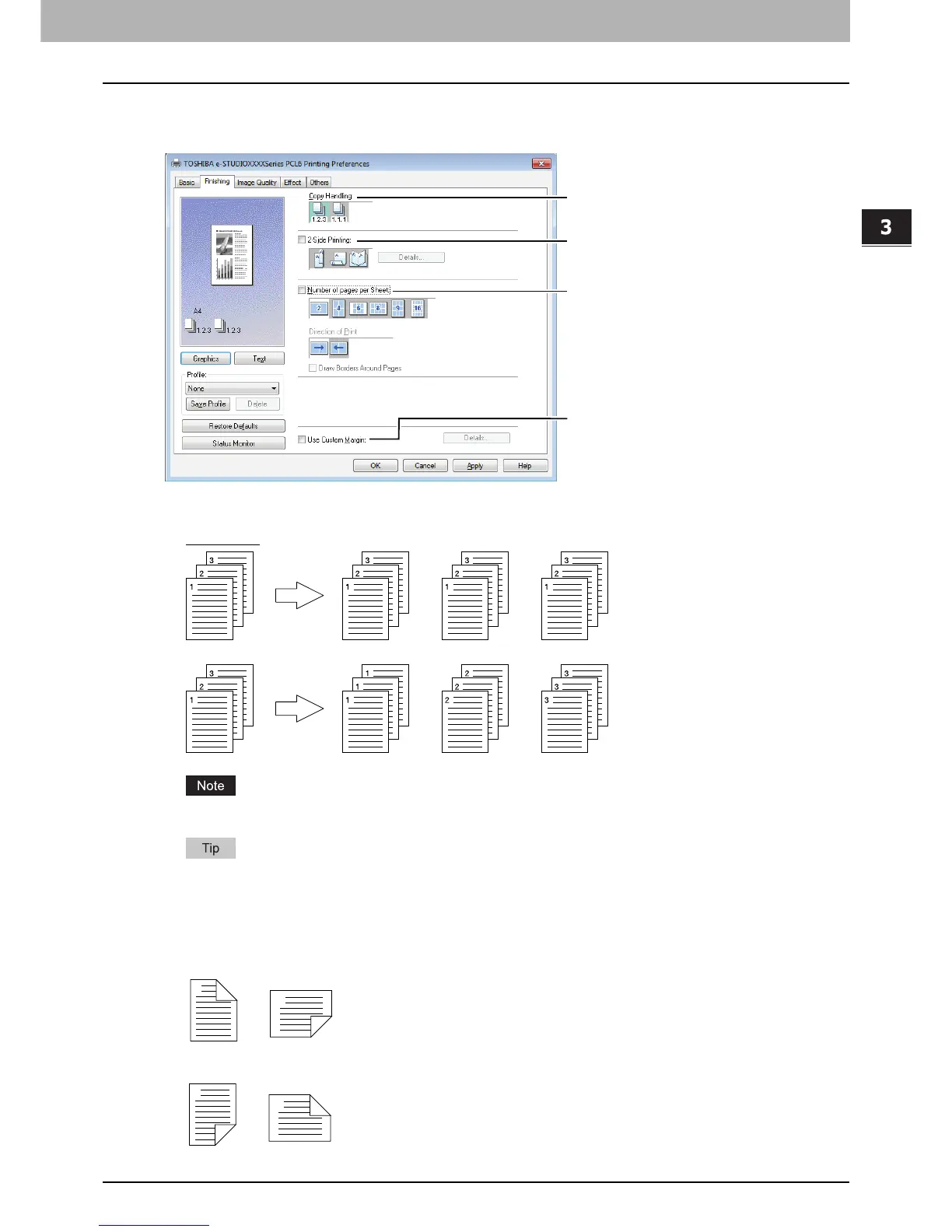 The [Finishing] tab allows you to enable sort printing and N-up printing.