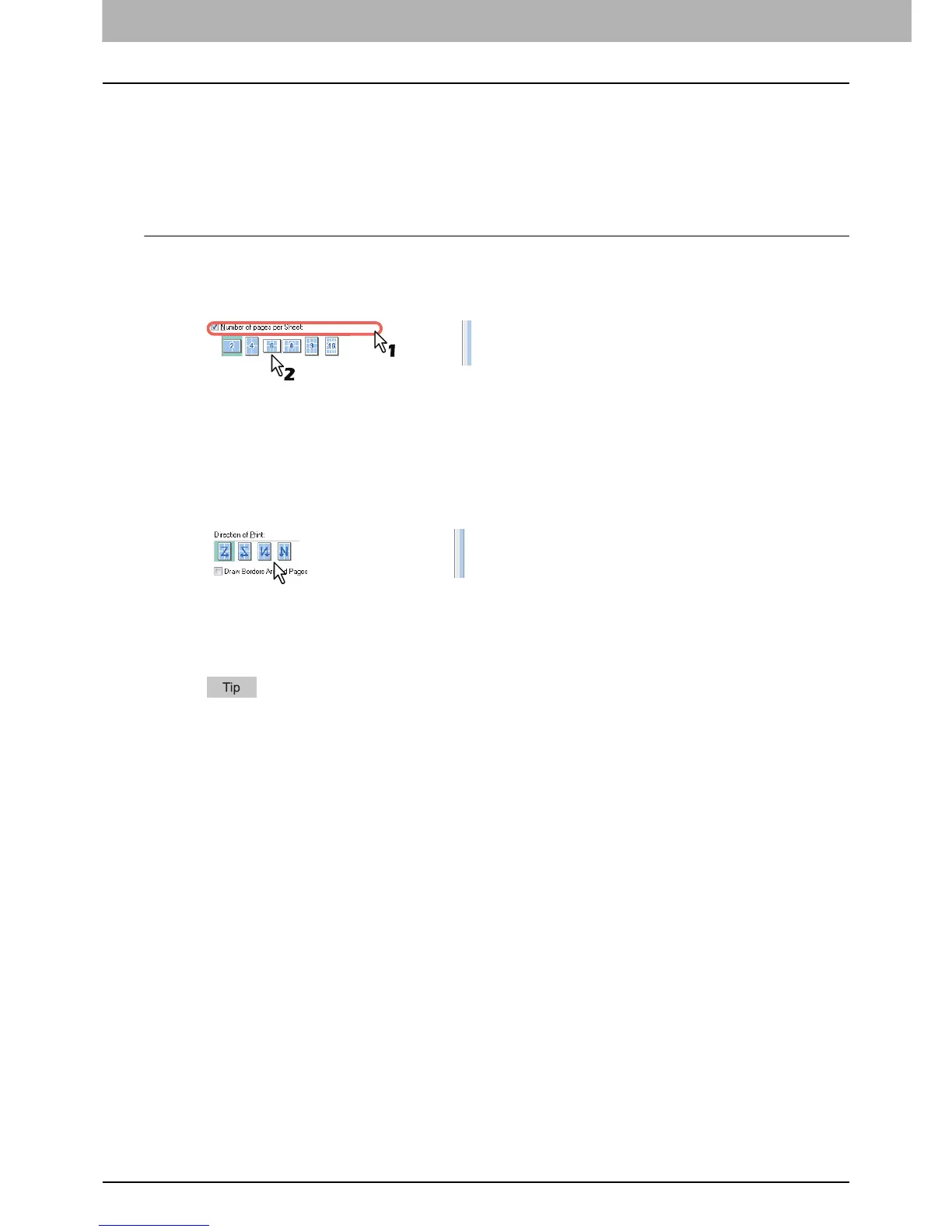 Select how the pages are arranged on one sheet in the [Direction of Print] option.