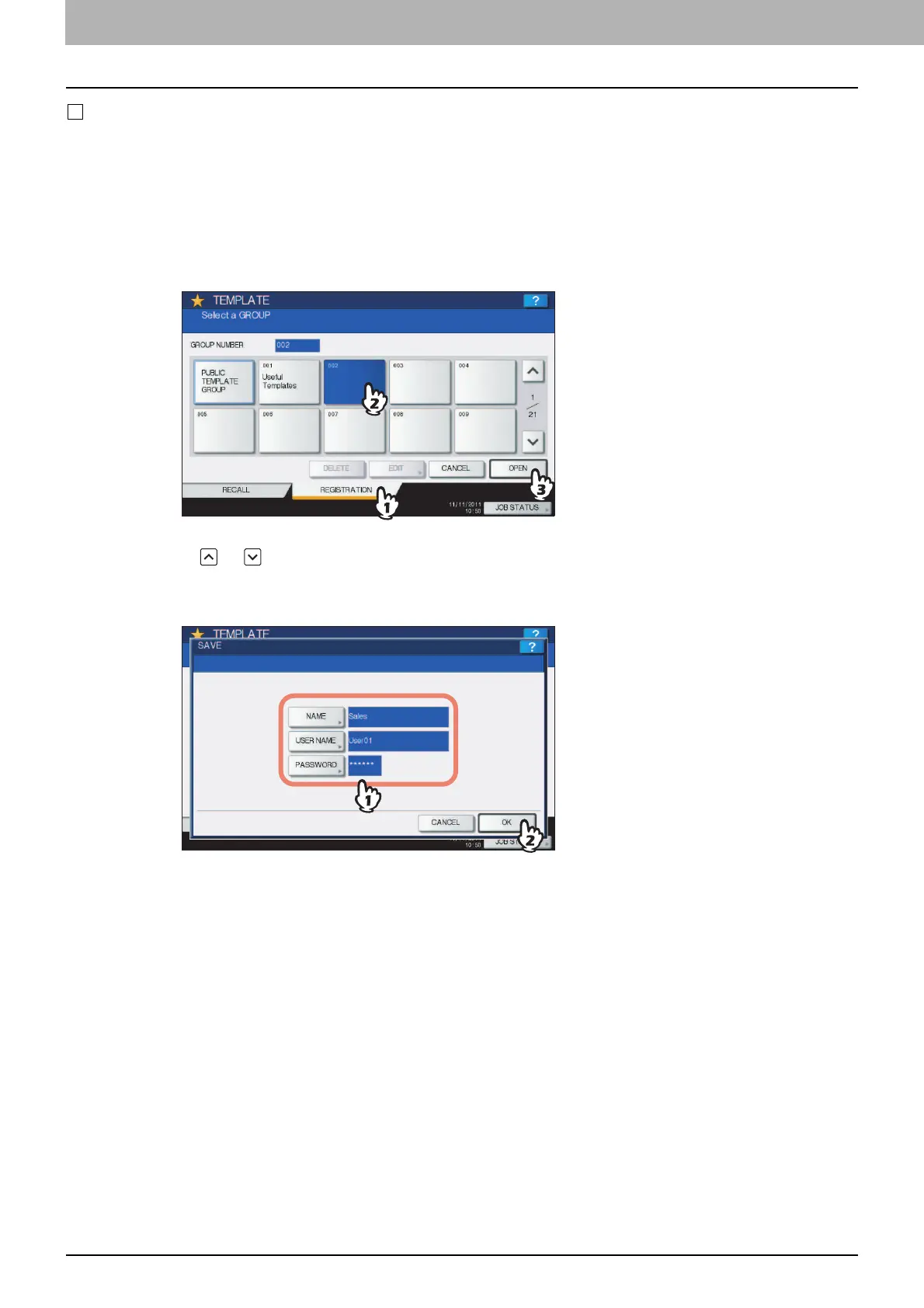 templates into the group. When you press it, the on-screen keyboard appears. Follow the procedure