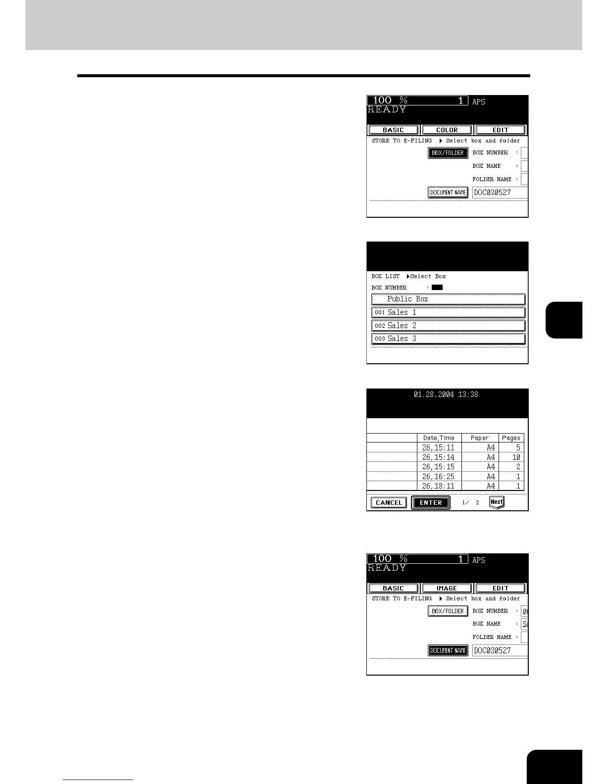- See the procedure of “e-FILING” for setting a new user box.