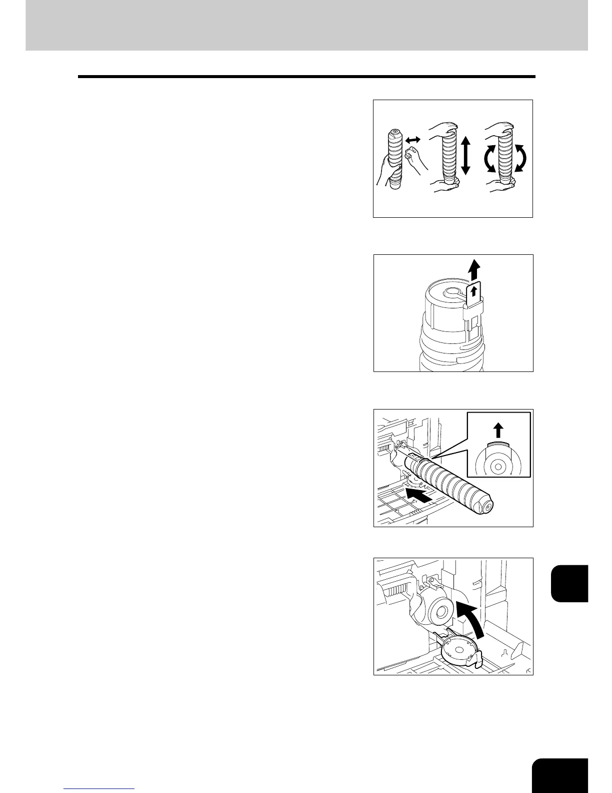 - If the cartridge becomes dirty with toner, clean it before inserting