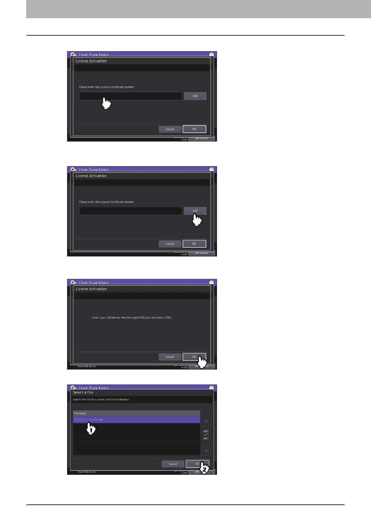 - Select the file that contains the license certificate number and press [OK].