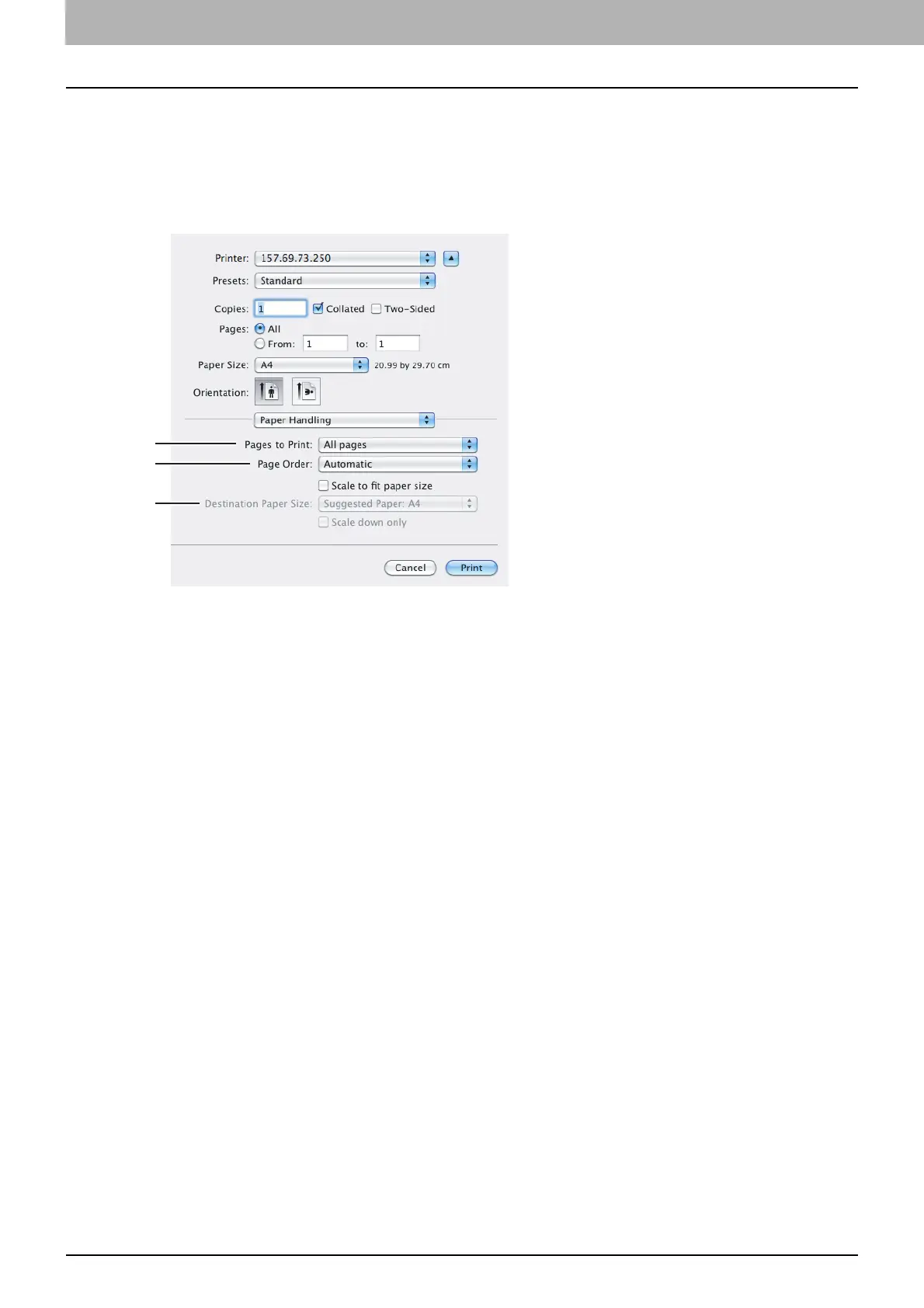 than the original one, select the [Scale down only] check box, so that you can print the document at its