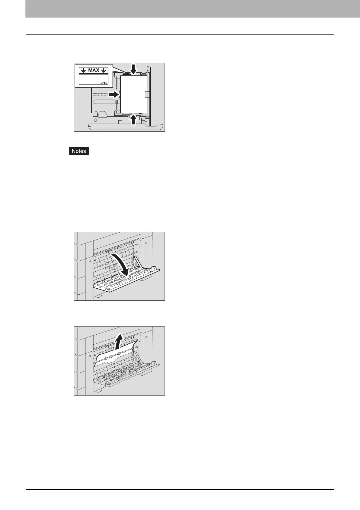 Be sure that the height of the stacked paper does not exceed the line indicated inside of the side