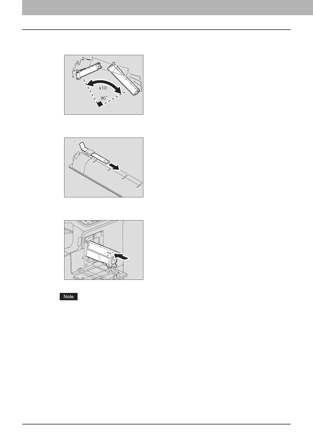 Shake the new toner cartridge strongly with the label surface down to loosen the toner