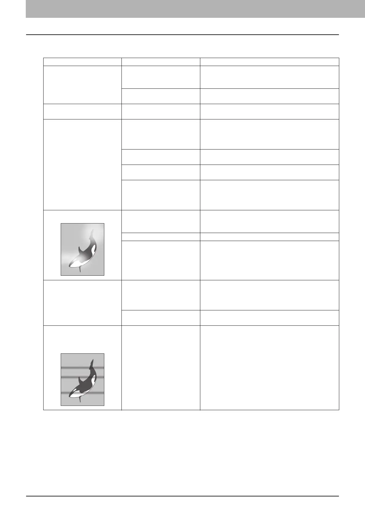 The copy image is light. Toner has run out. Replace the toner cartridge if the “TONER