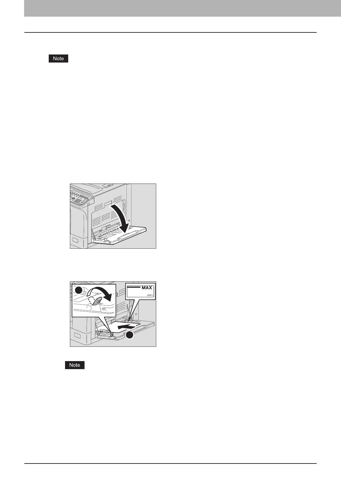 Pull the paper holding lever out, and then load paper face down and straight on the