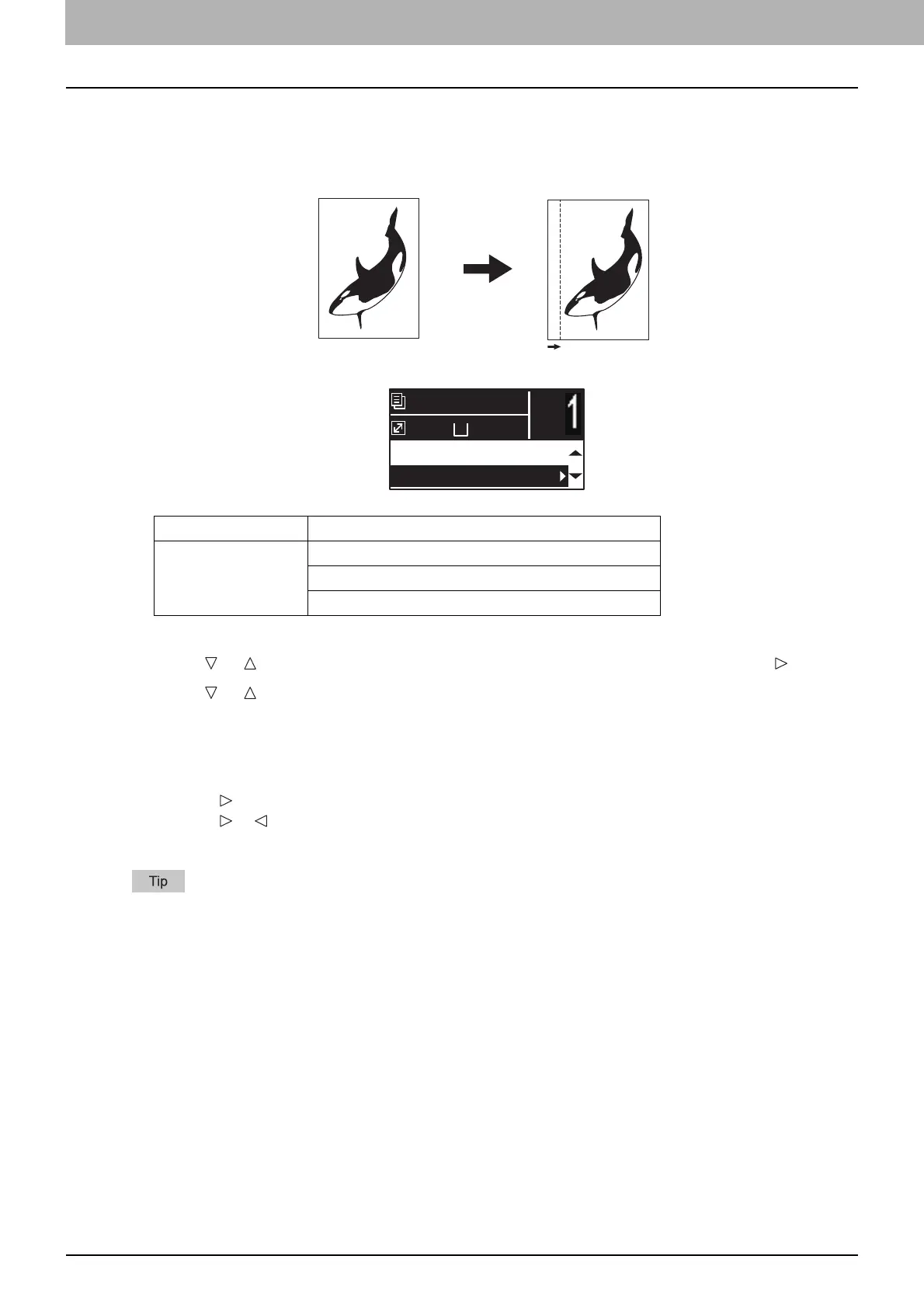 You can shift pages to the right or left. The shifted area can be used as a margin for punching holes or