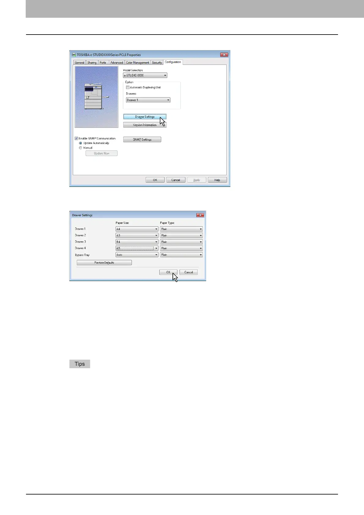 Drawer 1 — Select the size of paper that is loaded in the Drawer 1. The paper type for the drawer is