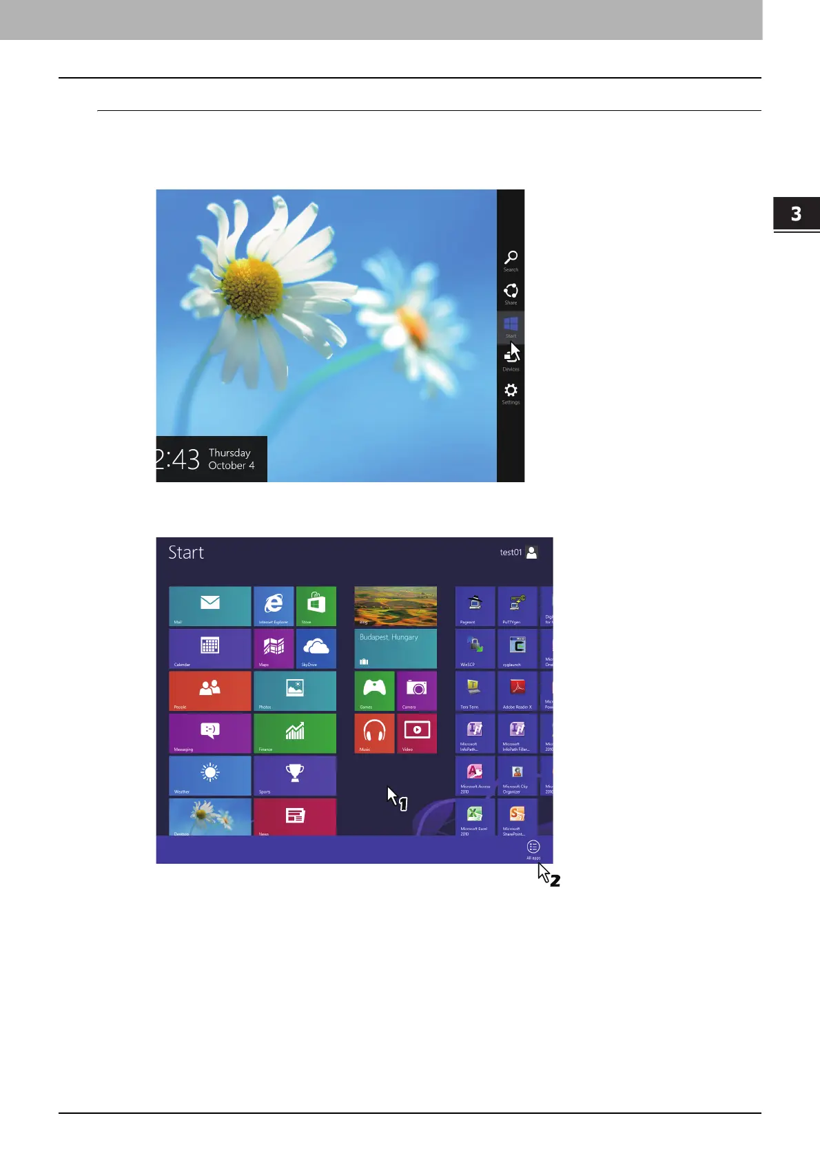 Right-click in the blank area in the [Start] screen, and then click [All apps] that appears.