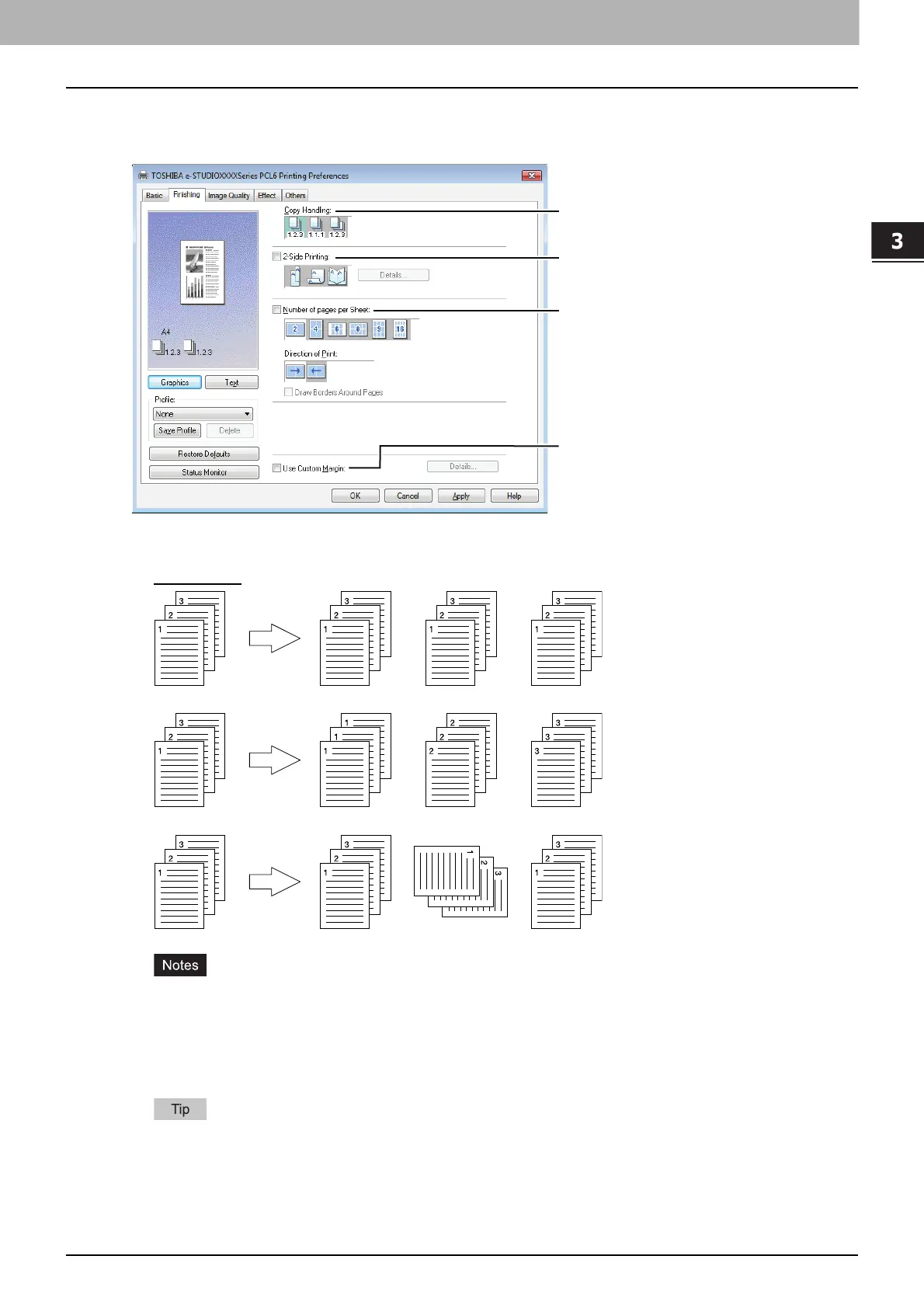 The [Finishing] tab allows you to enable sort printing and N-up printing.