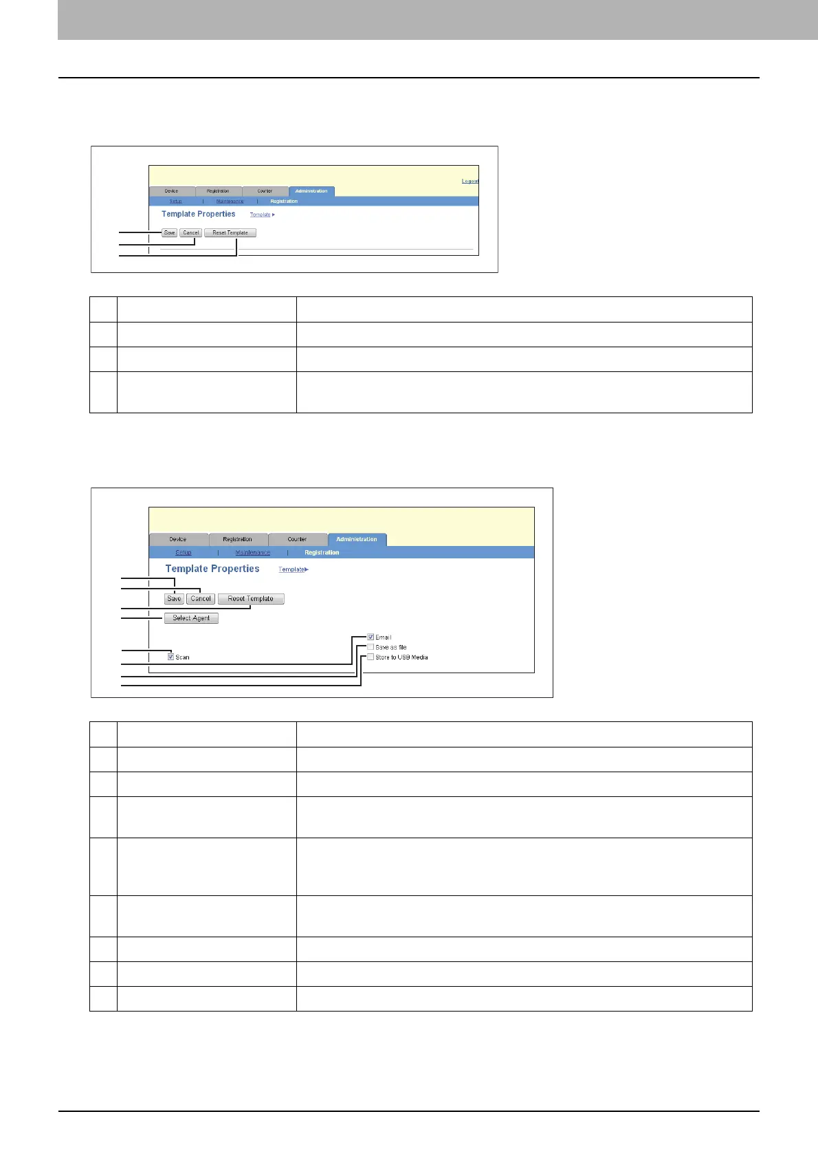 3 [Reset Template] button This button is displayed when the template is already registered. Click the